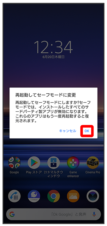 - セーフモードで電源を入れると、追加していたウィジェットが削除されることがあります。