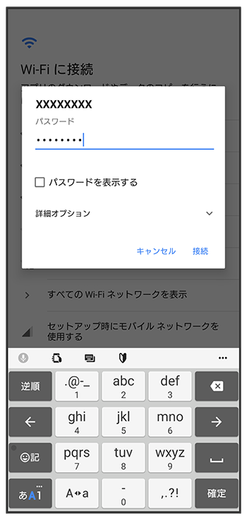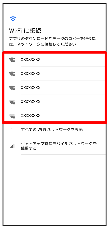 - Wi-Fiの設定を省略するときは、をタップします。以降は、画面の指示に従って操作してください。