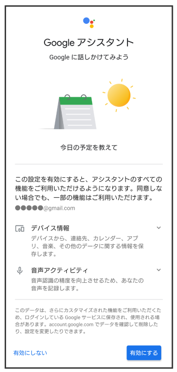 画面の指示に従って、Google アシスタント/Google Payを設定