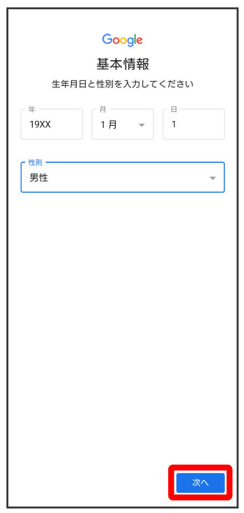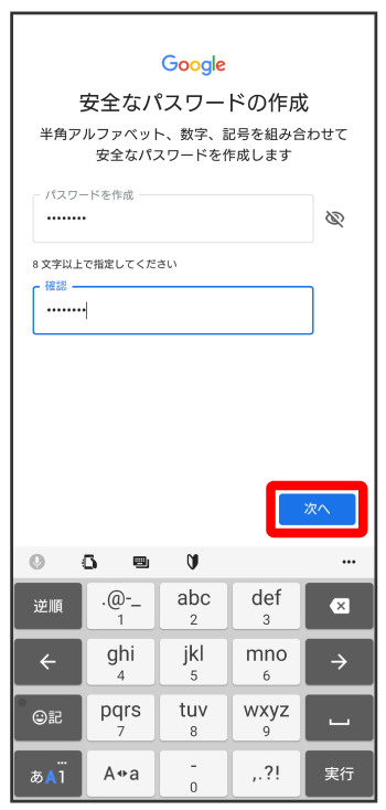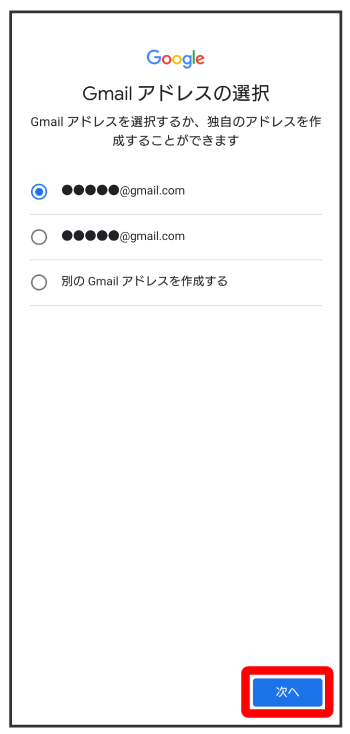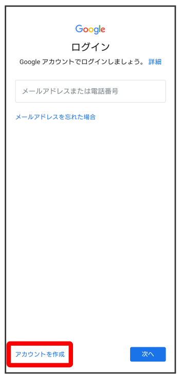 - 自分でGmail アドレスを作成する場合は、ユーザー名(メールアドレス)を入力と操作します。