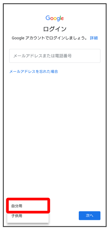 - 子供用のアカウントを作成する場合は、をタップして画面に従って操作してください。