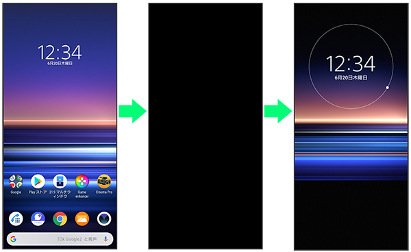 - 画面点灯時に電源キーを押すと、手動で画面ロックを設定することができます。