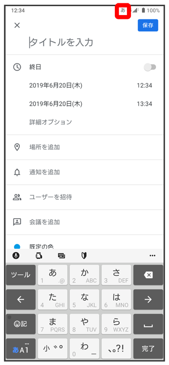 文字入力モードが「かな」になっていることを確認