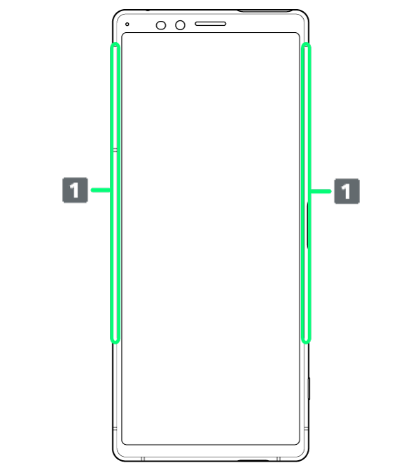 画面外側の縁をダブルタップするとサイドセンスメニューが表示されます。アプリの起動や、機能のON/OFFなどができます。表示するアプリはカスタマイズできます。 - マルチウィンドウメニューの表示