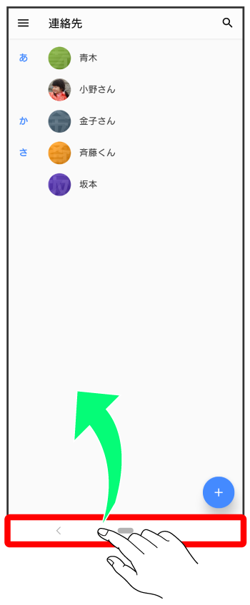 画面を上にドラッグして、ランチャー画面で利用したいアプリをタップしても切り替えられます。