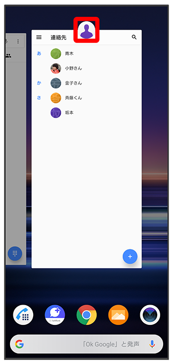 利用するアプリのサムネイル上部のアプリアイコンをタップ