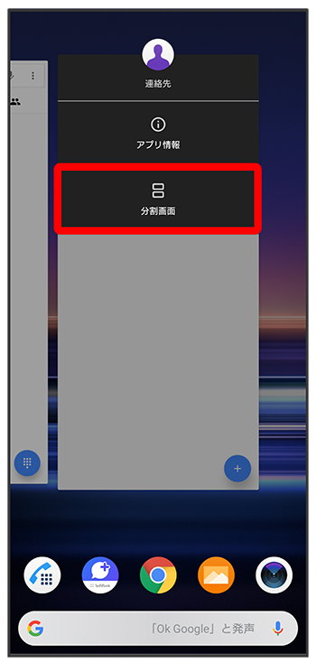 と操作したり、ホーム画面やサイドセンスメニューでと操作しても、マルチウィンドウを設定できます。