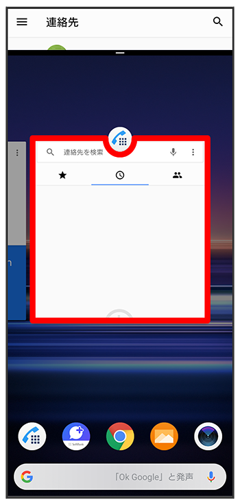 マルチウィンドウ画面下にタップしたアプリが表示されます。