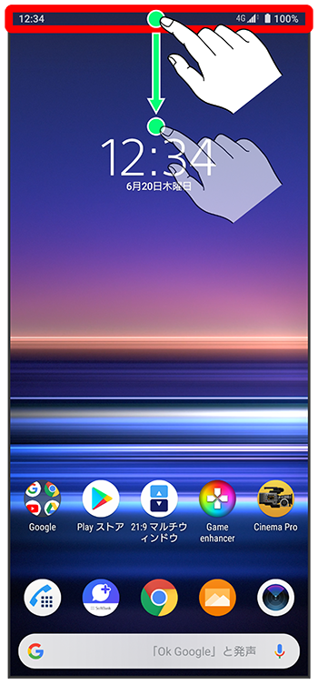 ステータスバーを下にドラッグ