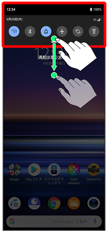 通知パネルを下にドラッグ