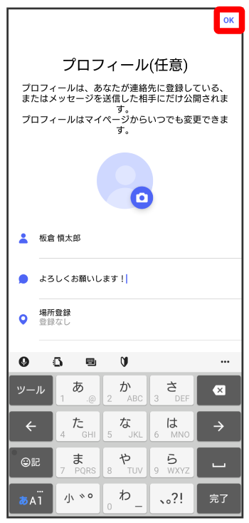 - 設定せずにをタップして、あとで設定することもできます。詳しくは、「プロフィールを編集する」を参照してください。