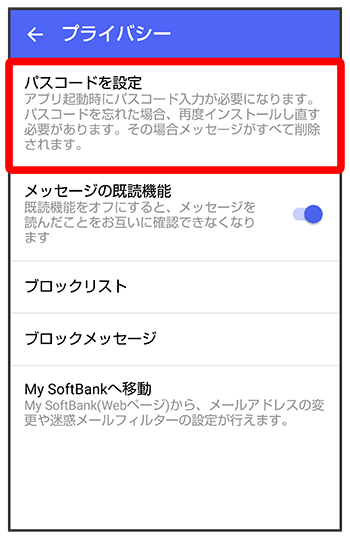 (+メッセージ)を開く際にパスコードの入力が必要になります。