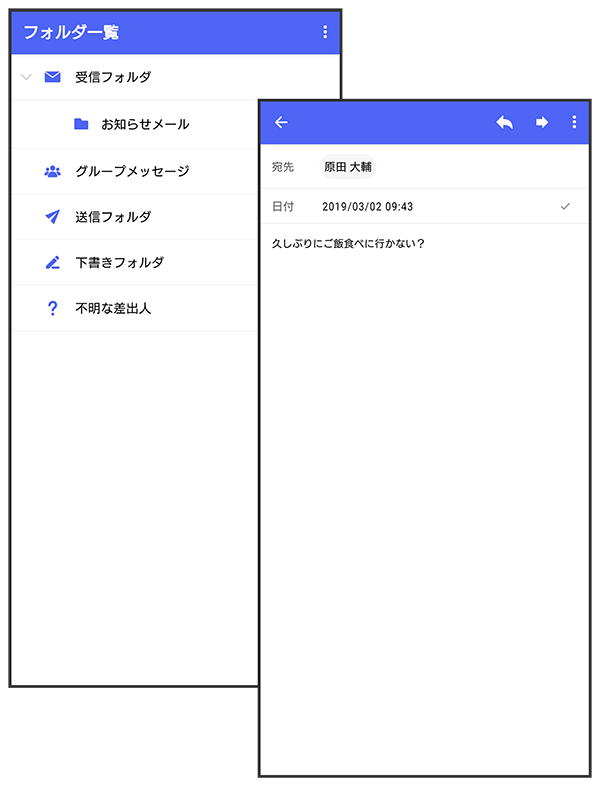 - フォルダ形式で表示される画面について詳しくは、「フォルダ一覧画面の見かた」、「メッセージ詳細画面の見かた(フォルダ形式表示)」を参照してください。
