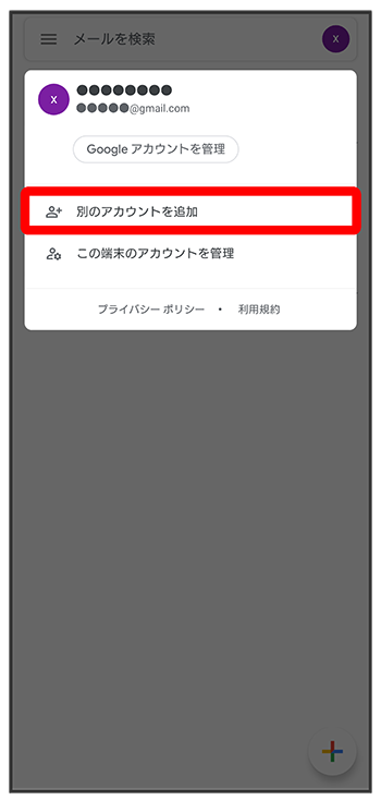 メール一覧画面でアカウントのアイコンをタップ切り替えたいアカウントをタップ
