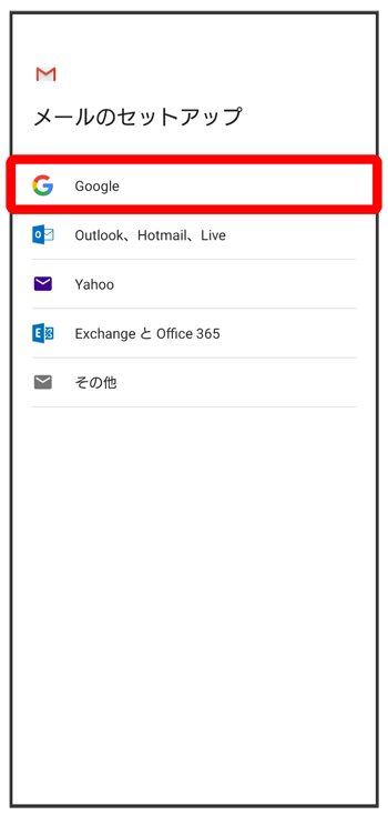 ここではGoogleのメールアカウントの追加を例に説明しています。
