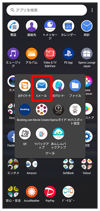 eメール一覧画面で未読にするメールをロングタッチメールを削除する