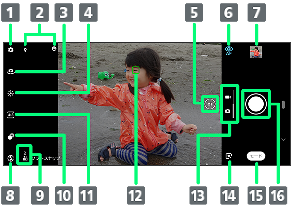 - シャッターアイコン(写真)/撮影開始/停止(動画)7