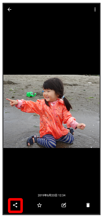 写真/動画一覧画面で写真/動画をタップ画面をタップ- 「連続撮影」ファイルは、Bluetooth®を使用しての送信はできません。