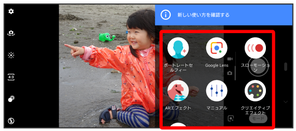 「クリエイティブエフェクト」のエフェクトの種類を切り替える
