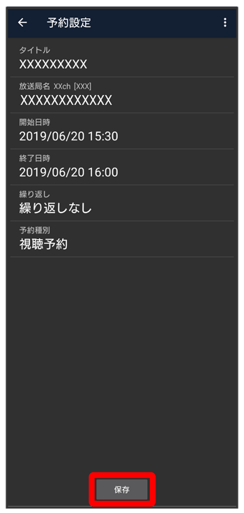 予約設定画面が表示されます。