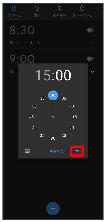 アラーム設定時刻になると、アラーム音や振動でお知らせします。
