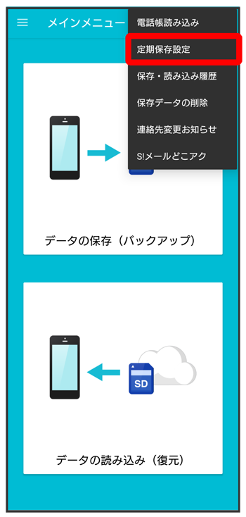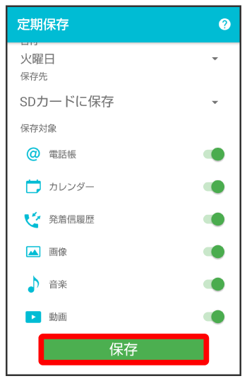 保存先をに設定したときは、電話帳、カレンダーのデータのみ保存します。 - メールは本機能では保存できません。