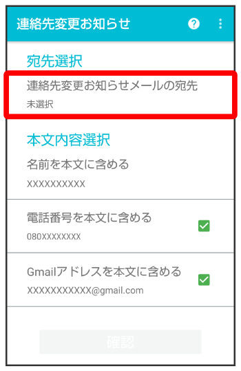 - /をタップすると、本文に電話番号/Gmailアドレスを記載するかどうかを設定できます。タップするたびに、有効(