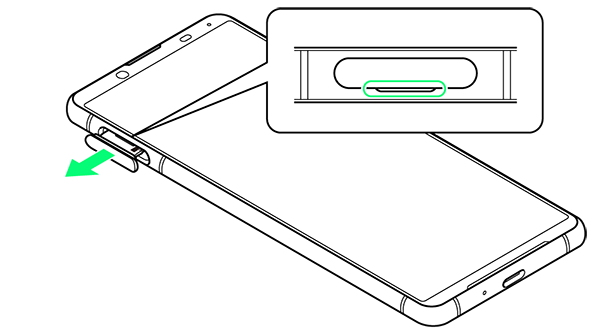 - ミゾに指先(爪)をかけて、SIMカード/SDカード挿入口のカバーをまっすぐに引き出してください。