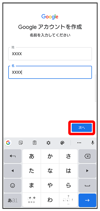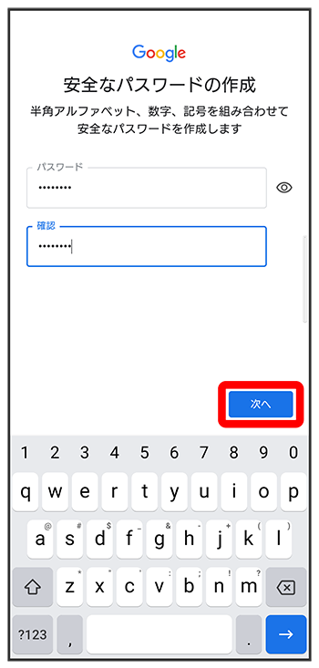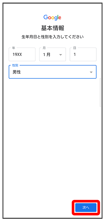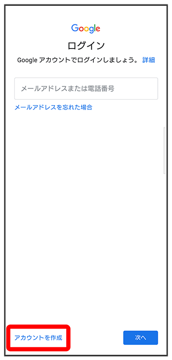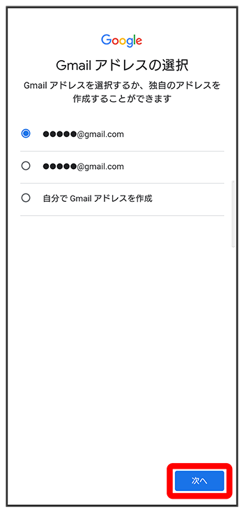 - 自分でGmail アドレスを作成する場合は、ユーザー名(メールアドレス)を入力と操作します。
