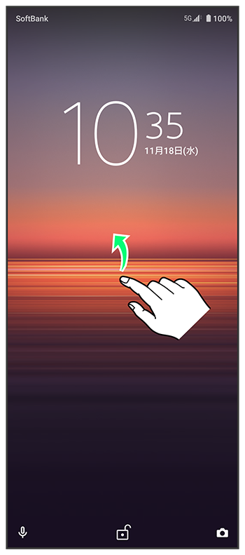 - 画面ロックの解除方法は変更することができます。画面ロック解除方法の設定について詳しくは、「画面をフリックして画面ロックを解除するように設定する」、「パターンを指でなぞって画面ロックを解除するように設定する」、「ロックNo.で画面ロックを解除するように設定する」、「パスワードで画面ロックを解除するように設定する」を参照してください。