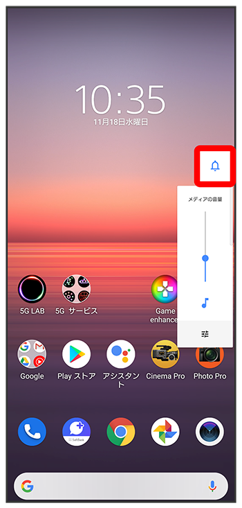 音量キーの上/下を押す