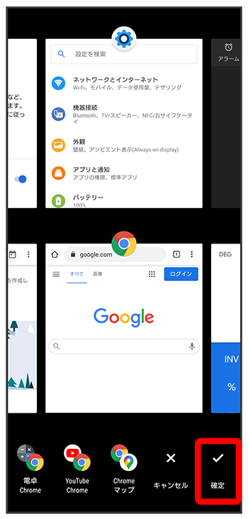 分割表示した2つのアプリを切り替える(マルチウィンドウスイッチ)