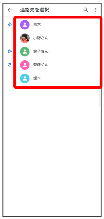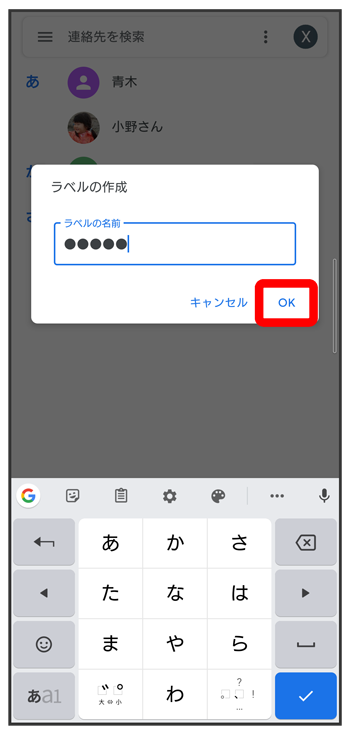 - 複数の連絡先を設定する場合は、ラベルを設定する連絡先をロングタッチ(