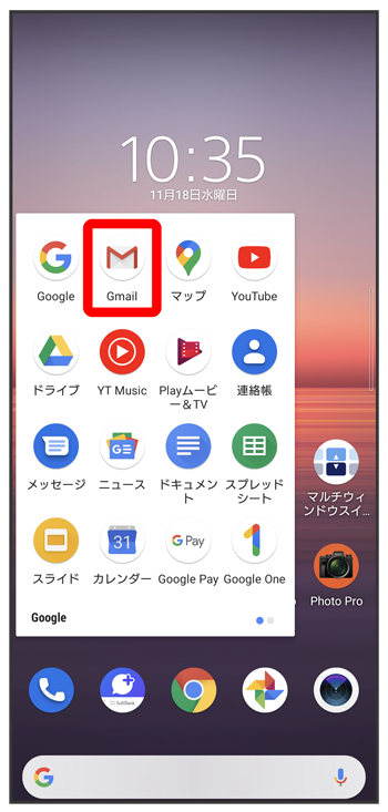 ここではGoogle のメールアカウントの追加を例に説明しています。