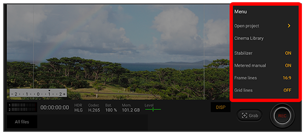 | Rec button pos. | 「Grab」と「REC」の表示位置を変更します。 |