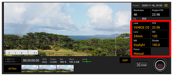 | Lens | レンズ(16mm f2.2/24mm f1.7/70mm f2.4)を切り替えられます。 |