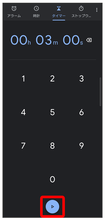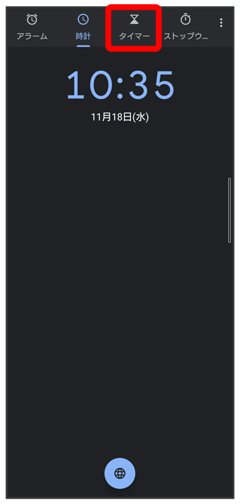 タイマー画面で時間を入力- タイマーを切り替えるときは、画面を上下にドラッグします。