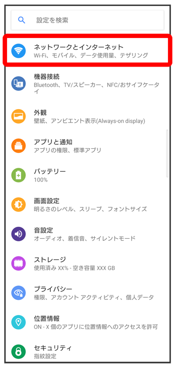 Wi-Fi 画面で設定したいネットワークをタップ- ネットワークをタップするたびに、設定(
