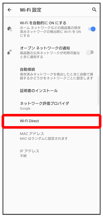 Wi-Fi Direct設定画面が表示されます。