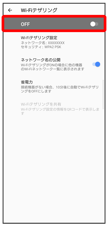 テザリング画面でネットワーク名(SSID)を入力セキュリティタイプを選択必要に応じてパスワードを入力