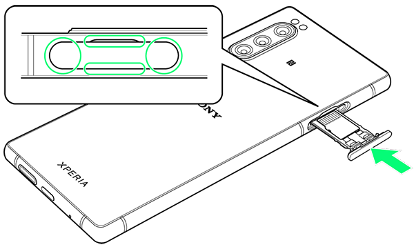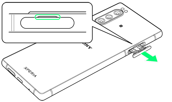 - ミゾに指先(爪)をかけて、SIMカード/SDカード挿入口のカバーをまっすぐに引き出してください。