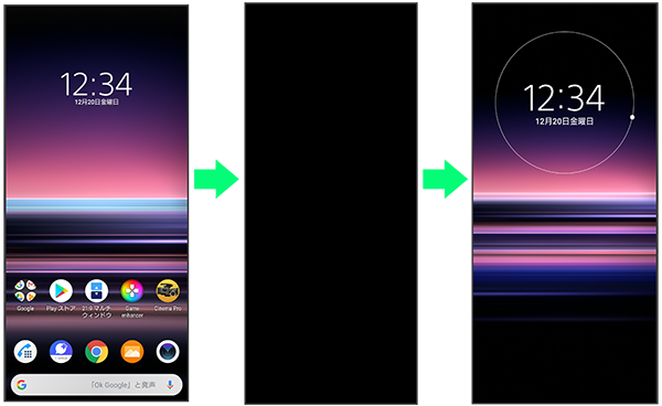 画面消灯(画面ロック)中に電源キーを押すと、ロック画面が表示されます。