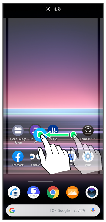 ホーム画面/ランチャー画面でフォルダに入れたいアイコンをロングタッチ