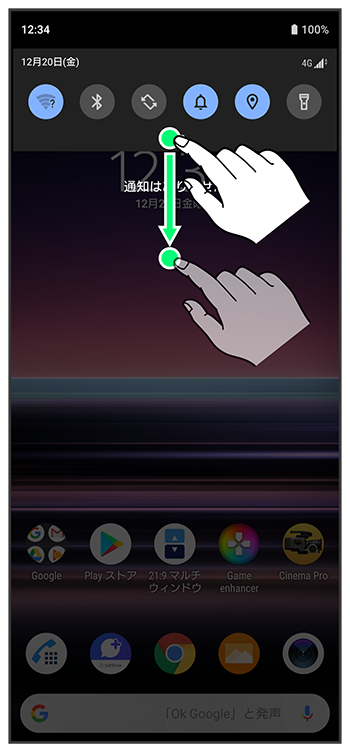 クイック設定パネルを上にドラッグ