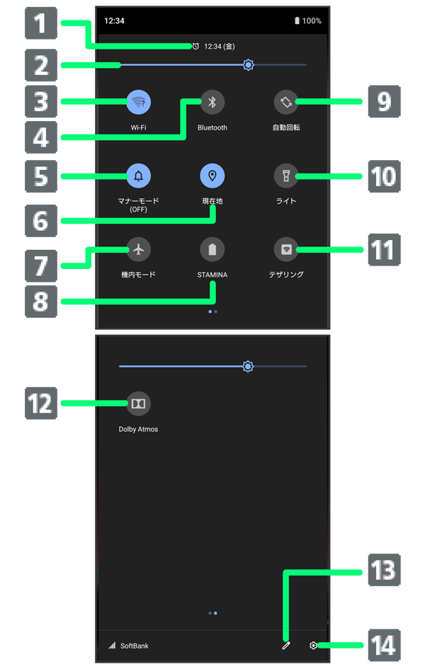 - アラーム設定状況やマナーモード設定状況などの情報を表示