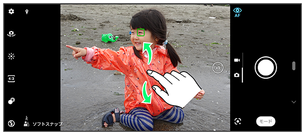 )を横画面では上下にドラッグ、縦画面では左右にドラッグしても、ズームを利用できます。 - 音量キーの操作は、「音量キー設定」により異なります。お買い上げ時は「ズーム」に設定されています。