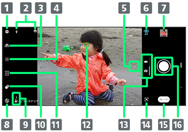 - シャッターアイコン(写真)/撮影開始/停止(動画)7