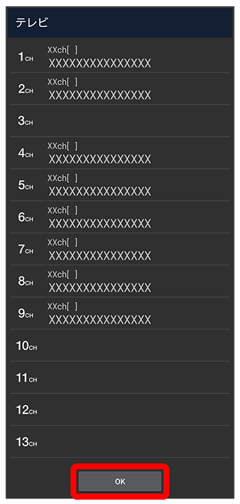 チャンネルのスキャンが始まり、終了すると放送エリアが設定され、チャンネルリスト画面が表示されます。
