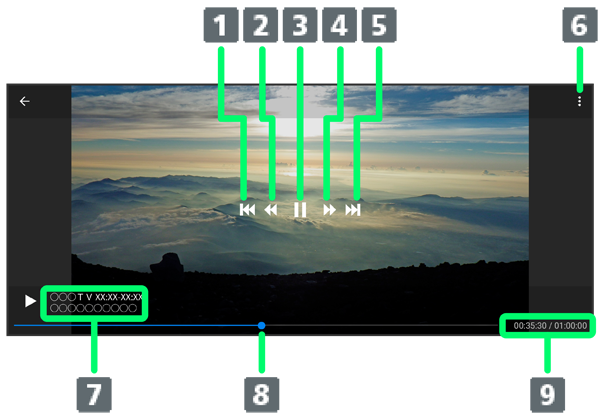 録画番組の再生中に映像をタップすると再生コントローラーが表示されます。