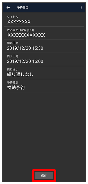 - 録画予約の場合は、「予約種別設定」で「録画予約(フルセグ)」「録画予約(ワンセグ)」を選択できます。